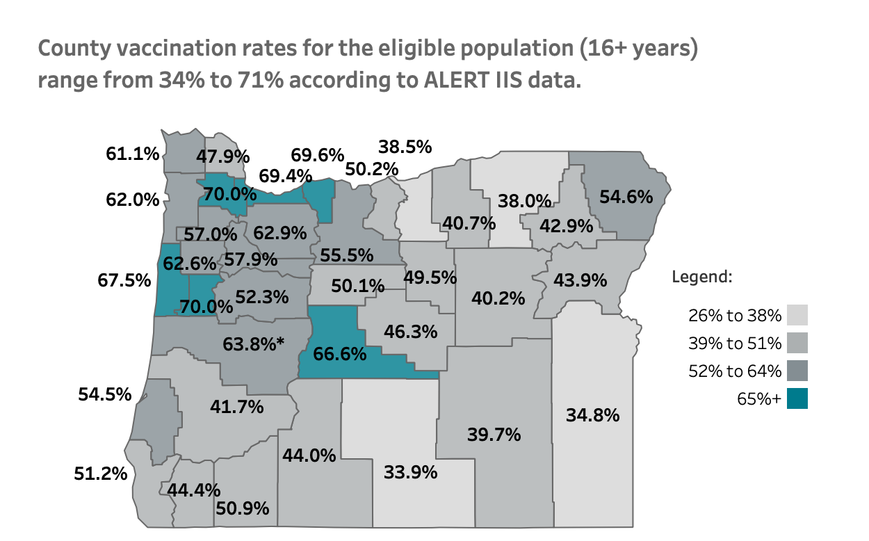 - We are also getting very close to 65% vaccinated first dose in Clatsop